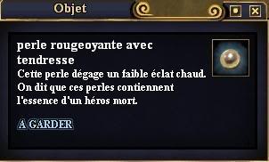 | Pugh | appel du Héros Le 06/04/08 à 18h26 Malgré des recherches en jeu et dans le site, des questions à ma guilde et hors perso je n'ai toujours pas trouvé la réponse à cette question angoissante : Où trouve-t-on la perle luisant faiblement, perle qui sert comme tout le monde le sait (ou pas) à activer l'Appel du Héros pour les Invocateurs (sert à tp les joueurs d'un groupe là où se trouve l'invocateur) Merci beaucoup d'avance à celui qui me renseignera, je cherche depuis 2 semaines ;) |