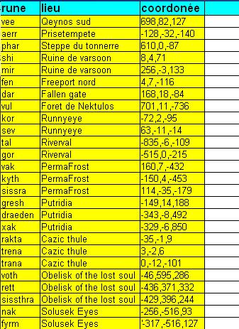 | Althia | re:Liste des Runes Faite par Althia, pour la quete "Parler comme un dragon" Le 27/03/09 à 16h39 il y'a quelque erreur dans les coordonnées mais bon de deja connaitre la zone aide beaucoup |
