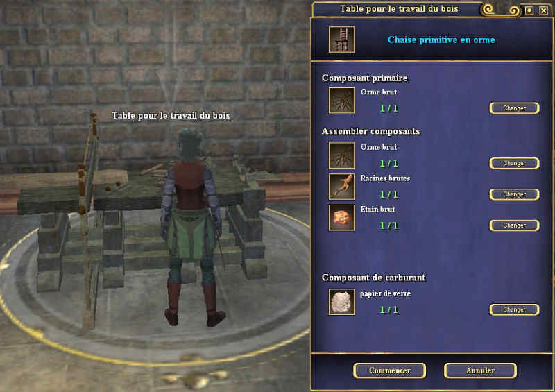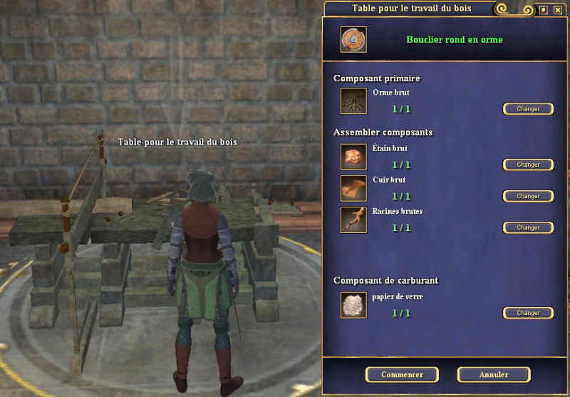 Dirigez vous à la Table pour le travail du bois. Il vous faut : 2 orme 1 racine 1 étain 1 papier de verre (s'achète au grossiste)