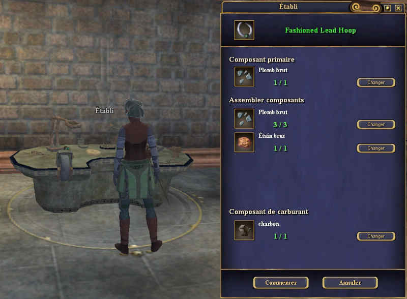 | | Recherche d'une profession IX | On vous demande maintenant de créer un Cercle de plomb façonné, recette de level 8. La recette s'appelle : Fashionned Lead Hoop.