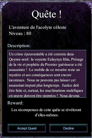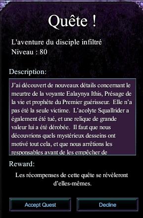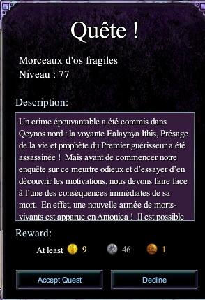 PS: Toutes les recompenses obtenues lors de ces quetes sont basée sur le niveau de mon personnage niveau 80