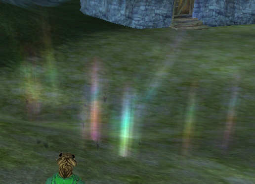 | | Etranges lumières | Depuis l'ouverture des territoires de Desert of Flames, des phénomènes inhabituels apparaissent, des lumières prismatiques semblant poindre des profondeurs de la terre, des rayons colorés virevoltants au raz des herbes. Ces signes démontrent une effervescence souterraine, ces lueurs sont le X qui marque le point d'une cache dont le trésor ne demande qu'à être ramassé.
