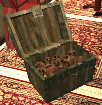 Tier / Type : Tier 3 Catégorie : Coffre Rare : bois de sapin Valeur SP : 100 Level Craft : 27 Informations complémentaires Un grand coffre rempli de crânes, c'est magnifiquement décoratif, du moins pour un appartement de troll !