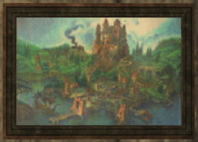 Oil painting of a stone castle