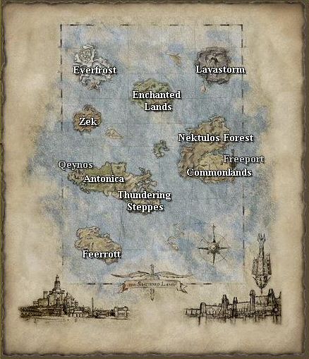 Grace à l'excellent mod EQ2Map (voir notre rubrique Liens) qui permet d'obtenir cartes et informations au sein même du jeu, cette rubrique n'est plus mise à jour.