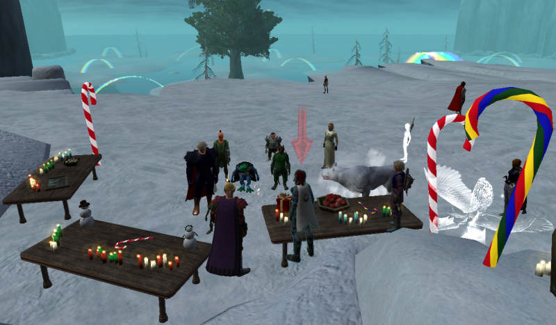 | | Frostfell wonderland village | En plus des cadeaux, cannes et bonhommes de neige qui fleurissent dans tous les quartiers, vous avez le sapin géant de Noël sur la place de la banque au port de Qeynos. De là, vous pouvez accéder à une nouvelle zone temporaire, via et c'est certainement un clin d'oeil au monde de Narnia, une armoire magique.