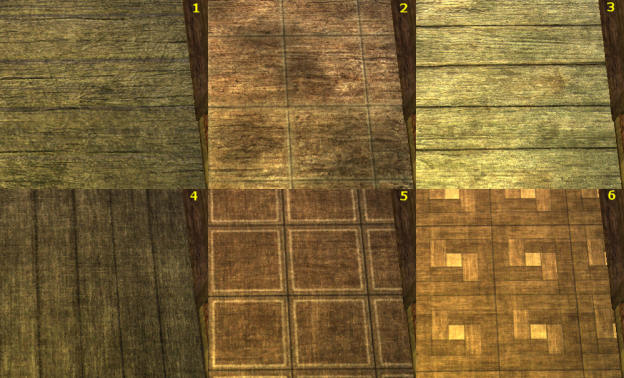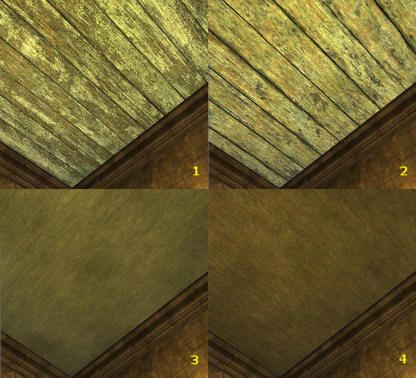 | Plafond 1 - Par défaut : Bois de saule crénelé 2 - 2g56s : Bois de saule brut 3 - 10g24s : Chêne traditionnel 4 - 20g48s : Eldar opulent