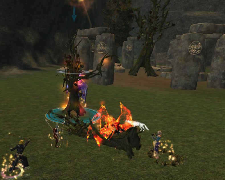 Ensuite vous vous positionnez sous les arbres à gauche et vous laissez le MT aller puller les gnolls qui sont dans l'anneau druidique.