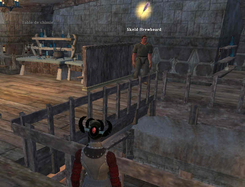 Chez les Qeynosiens : Il y a plusieurs PNJ à l'intérieur qui portent tous des noms différents. Quand vous arrivez, vous constaterez qu'il y a deux étages. Au rez-de-chaussée : - sur votre droite, vous avez le Négociant qui vous permet de vendre aux autres joueurs, mais cela mériterait un autre guide, dont vous pouvez avoir un avant goût dans l'un de nos guide : http://www.eq2.lordtry.com/forum/solucelire.php?story=107 - sur votre gauche, vous avez le Rush Orders qui vous donne des quêtes de City Task en craft avec un temps limité de réalisation, - un peu plus loin, le Work Orders qui vous des quêtes de City Task en craft sans limite de temps, - et enfin, celui qui nous interesse le plus, un personnage qui se tient à droite de l'escalier, dos à une porte. C'est lui qui validera votre quête de recherche d'une profession et vous donnera les différents quêtes de craft pour aller jusqu'au level 9 sans trop de difficultés.