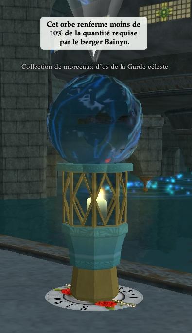 Vous pouvez voir a coté de lui une sorte d'autel avec une bulle d'eau. Il s'aggit d'un Collecteur d'os , il se remplit au fur et a mesure que tous les joueur d'everquest II finisse cette quete , il ne se limite pas a votre recolte personnelle.