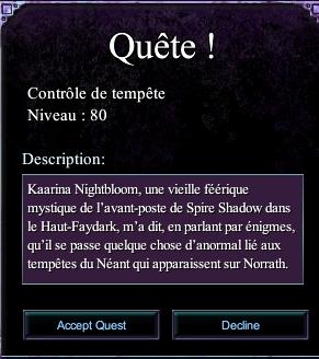 elle vous explique qu'il se passe des chose etrange en rapport avec les tempete du neant et que vous devriez aller en parler avec un adepte du concordium chargé de surveillez les tempetes ( le plus proche se trouve en 56,88, -3,37, -676,69 pres de la zone de depart de kelethin ) apres vous en etre approché et constaté sa mort retournez voir kaatrina