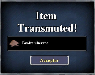 | | Généralités | L'objectif du transmuting est assez approchant de ce qu'on pourrait appeler l'enchantement. Il vous permet de créer des objets et potions que vous appliquez sur vos différentes pièces d'inventaire (armes, armures, bijoux ...) afin de leur octroyer des bonus (résistances, dégâts, caractéristiques ...). Sachez qu'il était Initialement prévu pour remplacer définitivement l'artisanat d'imbued, et que les bonus seront donc assez similaires à ce que vous connaissez déjà en imbued.