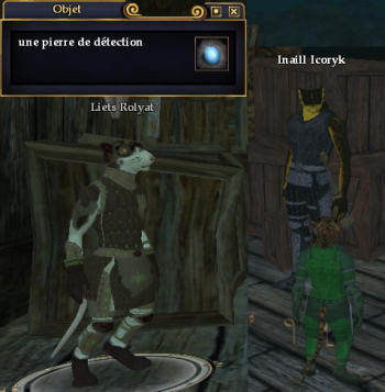 | | Etranges marchands | Parcourant les jetées à la recherche d'informations, vous découvrirez deux vendeurs se cachant dans l'ombre, et qui ne vous proposent qu'un seul et unique objet. Ces vendeurs sont le lézard Inaill Icoryk sur le ponton de la forêt de Nektulos, et le petit rat Liets Rolyat à l'angle de la première maison du ponton des steppes du tonnerre. Et cet article est d'apparence une simple petite pierre ronde et bleue, appelée Pierre de détection, et vendue 10s. 10s oui quand même, rien qui ne saurait faire mentir ce vieil adage comme quoi ... l'argent appelle l'argent.