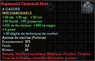 Catégorie : Mailles Classes : Combattants Prêtres Scouts Provenance / Tier : Quête Tier 7 Level mini : 66 Symbiosable : Non